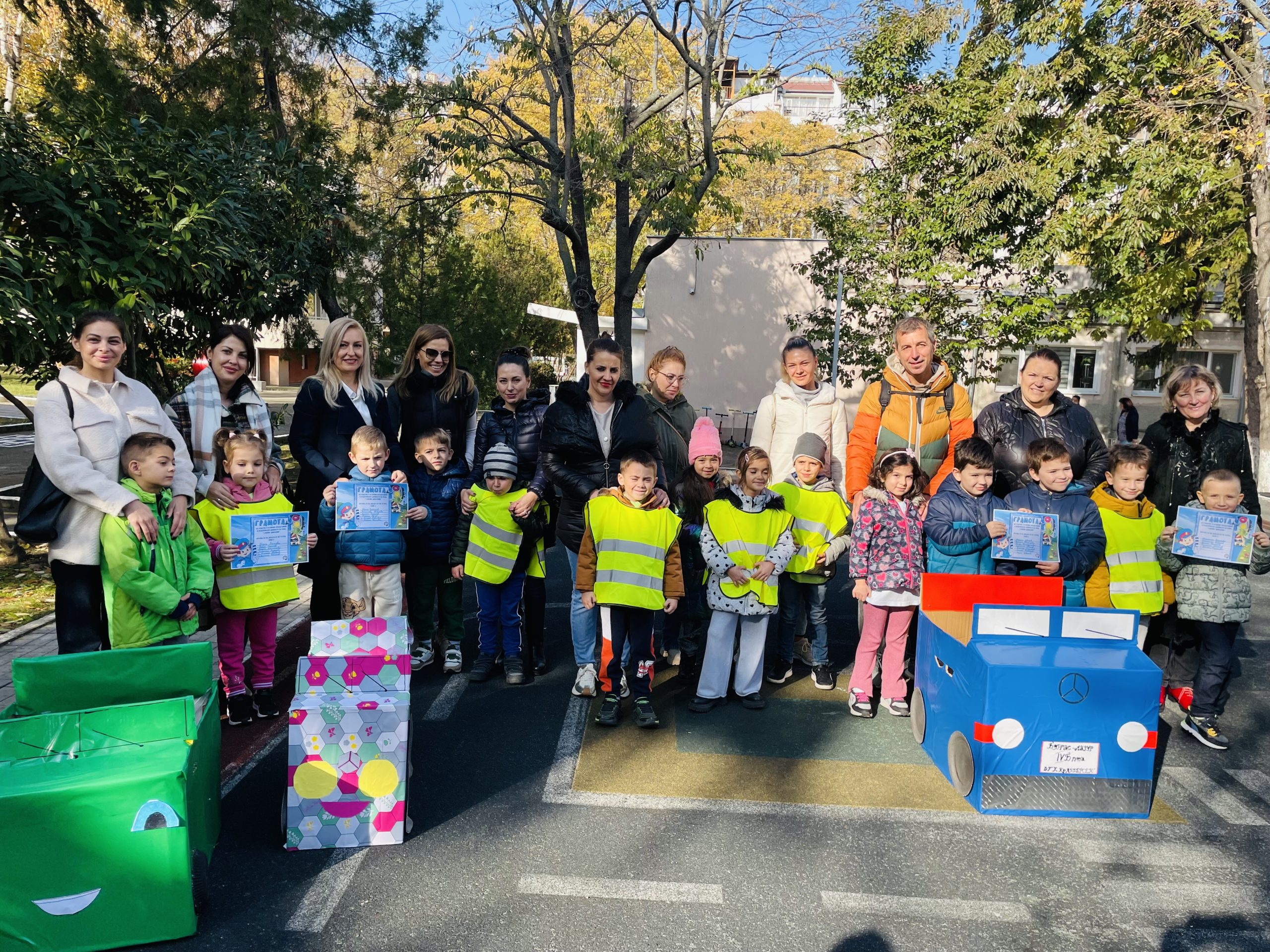 На 20.11.24 г. децата от 4 Б група от Детска градина „Ханс Кристиан Андерсен“ гр. Бургас разшириха представите си за понятията пешеходец, пешеходна пътека, пътно платно, кръстовище, светофар, превозни средства и пътни знаци. Отработиха успешно справянето с опасни ситуации на улицата.